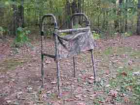 Some adaptations a person can do are pretty simple. From time to time, I use a walker in the woods but didn't like the bright aluminum finish of it so we covered it with camo cloth tape and my wife make a bag for the front of it.