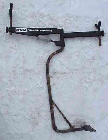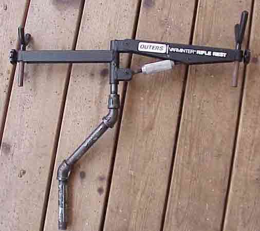 Here is the same rifle rest on my wheelchair. We spent $11 at the hardware store on steel pipe and fittings to attach it to the chair.