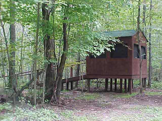 Here is an 8x8 shooting house that we built as the scooter does not climb up into my old tree stand well. It stands about 3.5 feet off the ground, and the ramp is about 25 feet long. I open and close the door with a rope setup. We painted the inside black so that the profile does not change with the windows open.