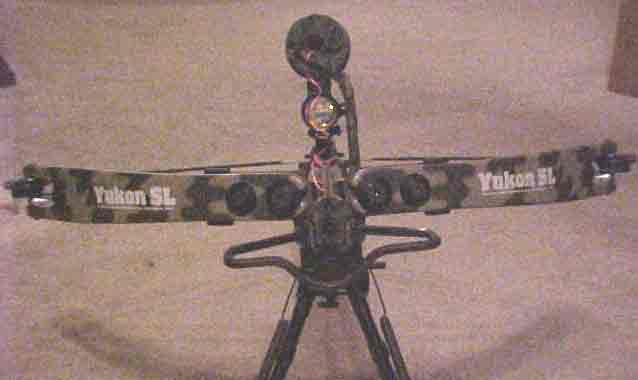 My crossbow rig is shown above. Nobody made a good device for crossbows like the Game Tracker, so my wife and I played with a threaded piece of steel and some cam cloth tape. With the help of the "shop guys" at school, we attached it to the crossbow. Thanks again Jerry and Roy. We came up with the above outfit and it has worked well on several deer.
