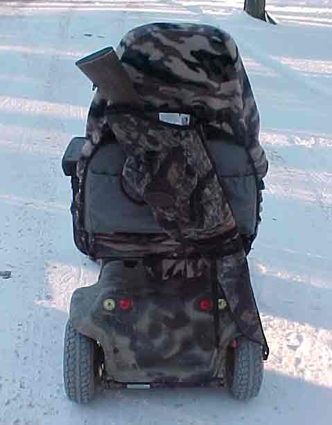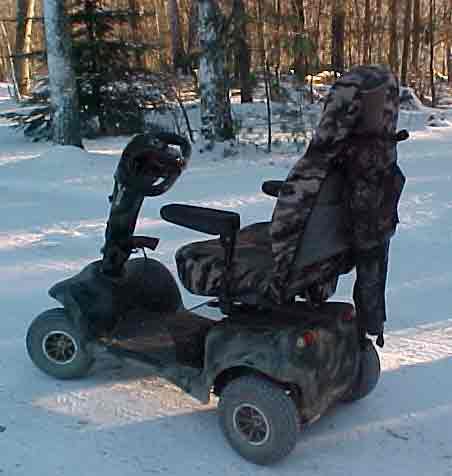Here is the Invacare Panther Scooter that I use to get around in the woods. I still need some more aggressive tires but a little duck boat camo paint dressed it up well.