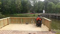 This park has been around for a long time but when we went there to fish this summer I was pleased to see a couple of "accessible fishing platforms" One of them worked out great for my wheel chair and that one is pictured below. The other one looked similiar but I couldn't get close to it because there were steps going to it. Apparently that one isn't for wheelchairs.